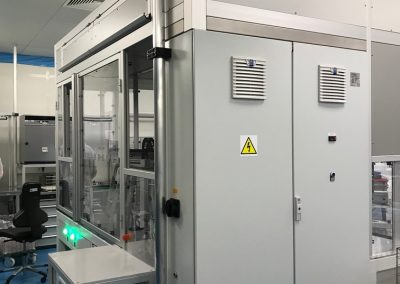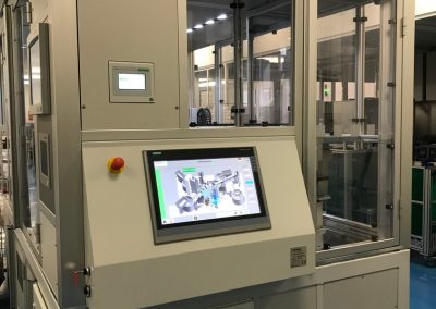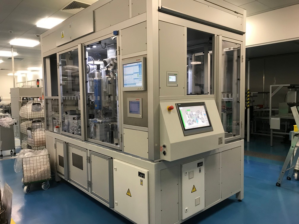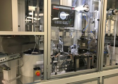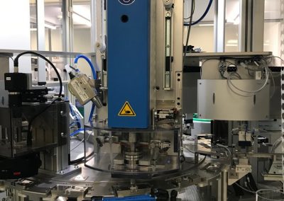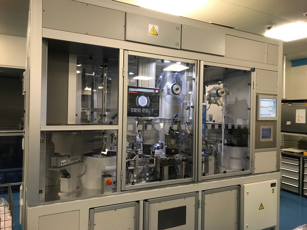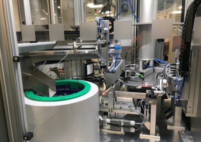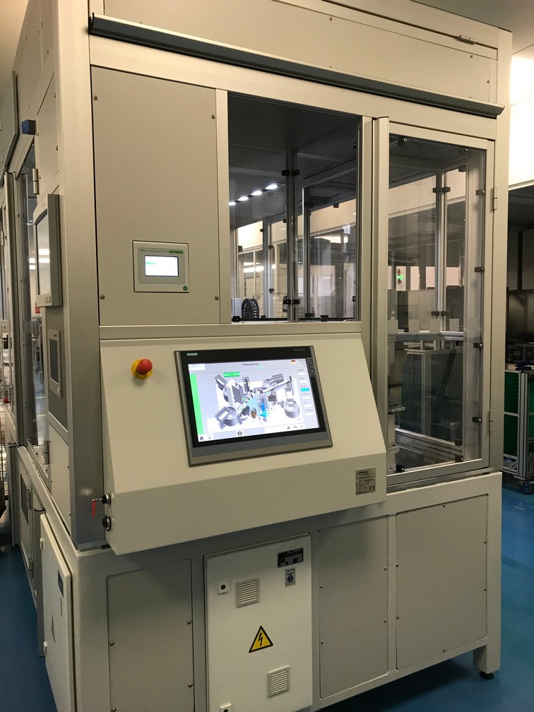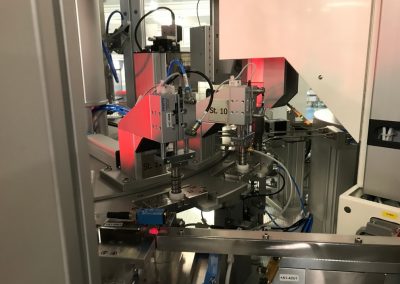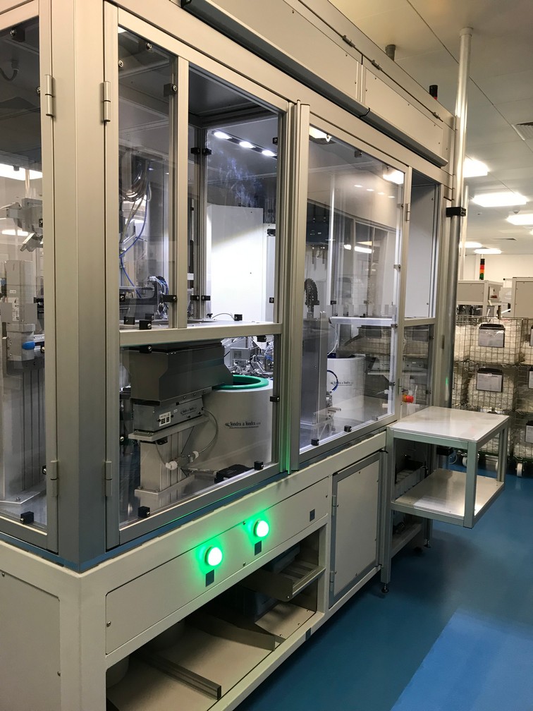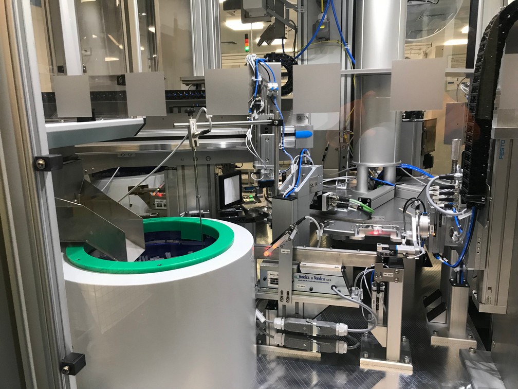 Všechny klíčové operace jsou průběžně kontrolovány a automaticky ihned vyhodnoceny. Stroj je osazen čtyřmi vibračními dopravníky, šesti elektrickými FESTO osami, průmyslovým šroubovákem firmy DEPRAG, který slouží k automatickému zašroubování ochranné čepičky přesně definovaným momentem, dále dvěma ultrazvukovými jednotkami pro UV svaření od společnosti HERMANN a zařízením na kontrolu těsnosti po UV svaru společnosti CETA