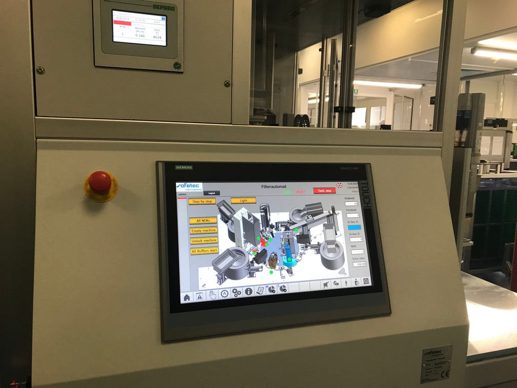 Z tohoto důvodu je klíčovou operací při kompletaci produktu naprosto dokonalé a přesné navaření vyseknutého filtru za pomoci ultrazvuku. Přesnost pozice navařeného kruhového filtru do jedné z komponent musí být v setinách milimetrů. Celkově se produkt skládá z pěti hlavních částí, které jsou automaticky z vibračních dopravníků a vibračních lišt dopraveny až do místa odběru a následného nasazení na karusel.