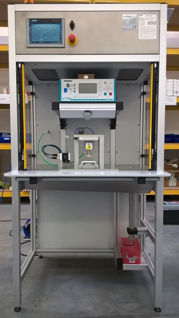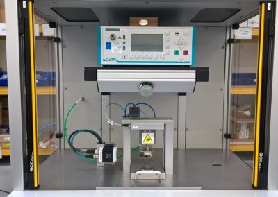 Toto poloautomatické zařízení je určeno pro výstupní kontrolu kvality produktů. Přesněji – pro verifikaci kvality po kompletaci produktu – přechodových dílů, u kterých se ověřuje montážní těsnost před finálním balením do blistrů a následnou sterilizací.