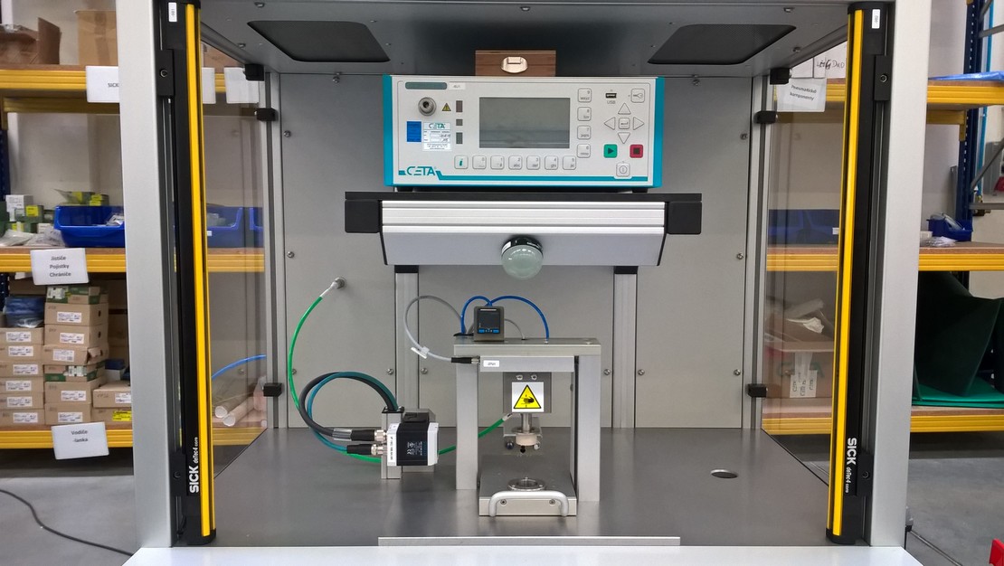 Pro samotný test je použita jednotka společnosti CETA, která umožnuje kontrolu produktu jak přetlakem tak podtlakem ( ve vakuu ). Jedná se o velmi sensitivní způsob kontroly, který dokáže odhalit i sebemenší netěsnost.