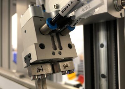 K manipulaci využíváme standardních řešení i velmi sofistikovaných kombinovaných nástrojů za jejichž pomocí jsme schopní s produkty manipulovat, rotovat, předávat mezi sebou a nebo souběžně provádět další detekce a kontrolní operace. K tomu využíváme standardní pneumatické prvky, programovatelné elektrické osy, mechanické, velmi přesné HSP a HSV manipulátory, robotické ruce nebo pick a place manipulátory – tripody.
